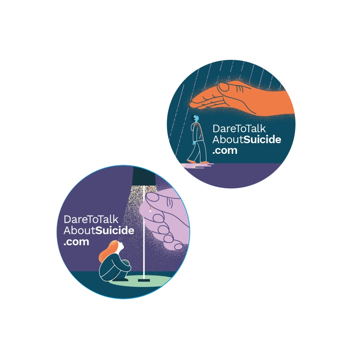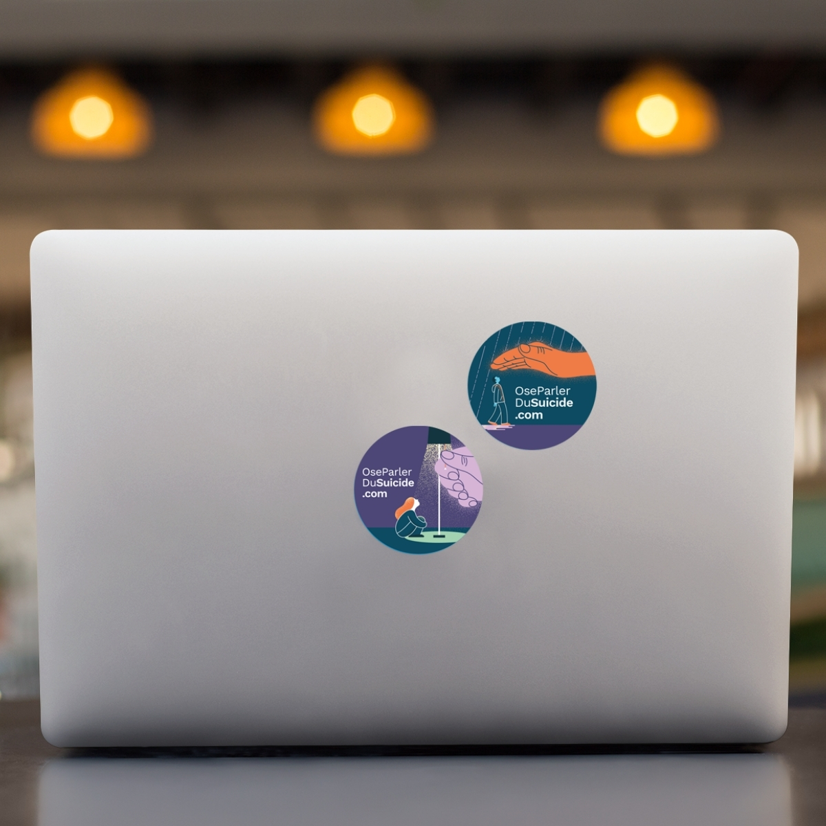 Assortiment de 50 autocollants des nouveaux visuels de la nouvelle campagne Tendre la main. Soutenir l’espoir. Ces autocollants sont conçus comme de véritables outils de sensibilisation et de prévention du suicide, invitant chacun à poser un geste bienveillant et à soutenir l’espoir autour de soi.