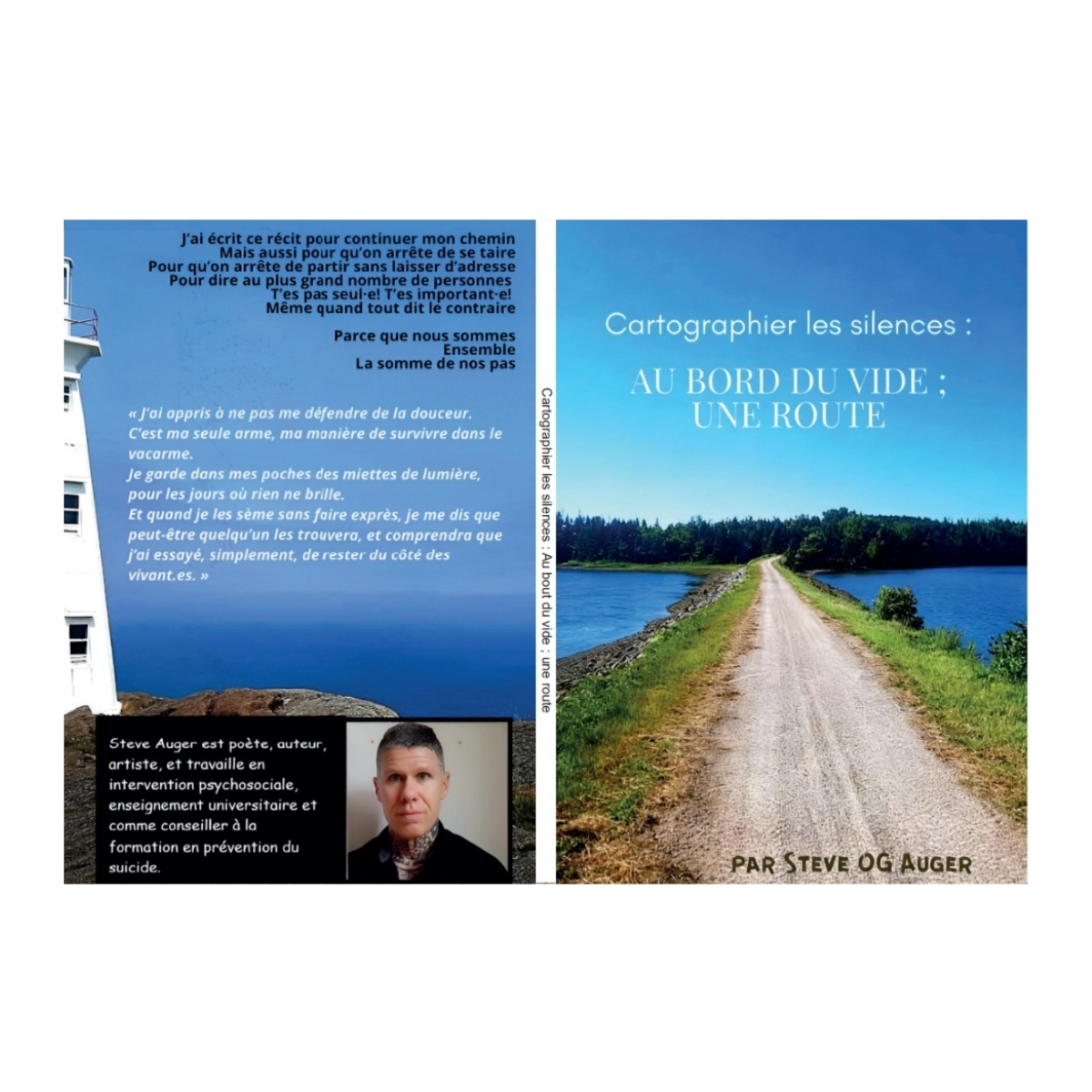 Cartographier les silences : Au bord du vide ; une route est un récit d’autofiction poétique né du besoin de mettre des mots là où, trop souvent, il n’y a que le silence. À travers une écriture intime et fragmentée, ce livre de Steve Auger explore la résilience humaine à travers une quête de sens, qui témoigne que même dans l’obscurité, émergent les chemins possibles vers la vie. Ce projet s’inscrit dans la continuité d’une initiative citoyenne réalisée en 2021, alors qu’une marche de 3372 km pour la prévention du suicide avait permis d’amasser 3500$ au profit de l’AQPS. Cette marche était une façon de dire, par le corps et le mouvement, que chaque pas compte et que personne ne devrait rester seul face à sa détresse. Aujourd’hui, cette route se poursuit autrement, par l’écriture et la lecture.
